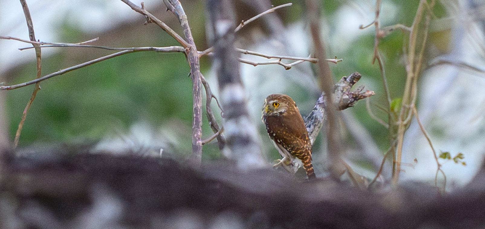The one and only bird I wanted to find was the ferruginous pygmy owl. It was reported on eBird the day before, and the guide pointed out a patch of trees where he knows them to hang out.